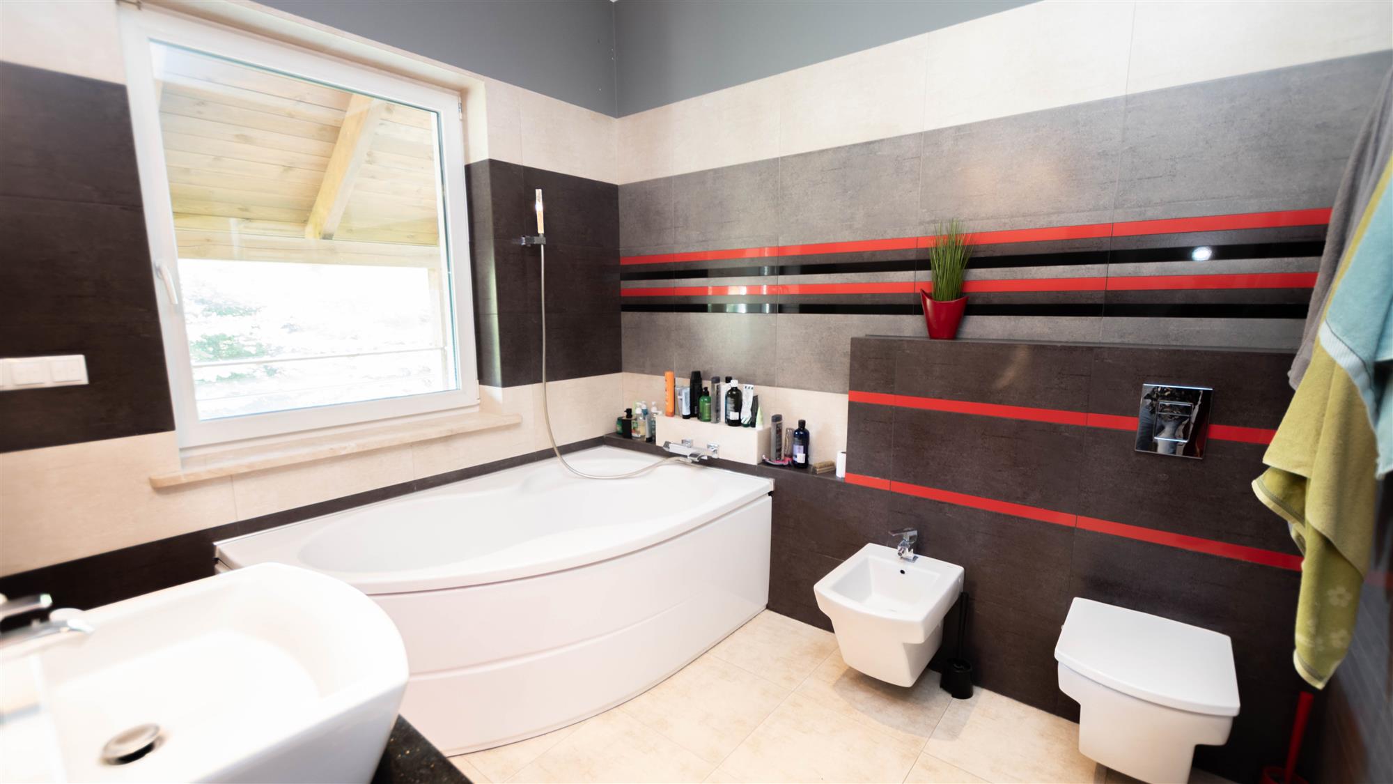 Budynek mieszkalny został wybudowany w 2011 roku i jest utrzymany w dobrym stanem technicznym oraz wysokim standardzie wykończenia. Dom jest parterowy z użytkowym poddaszem, częściowo podpiwniczony, o łącznej powierzchni użytkowej 209,71 m2.
