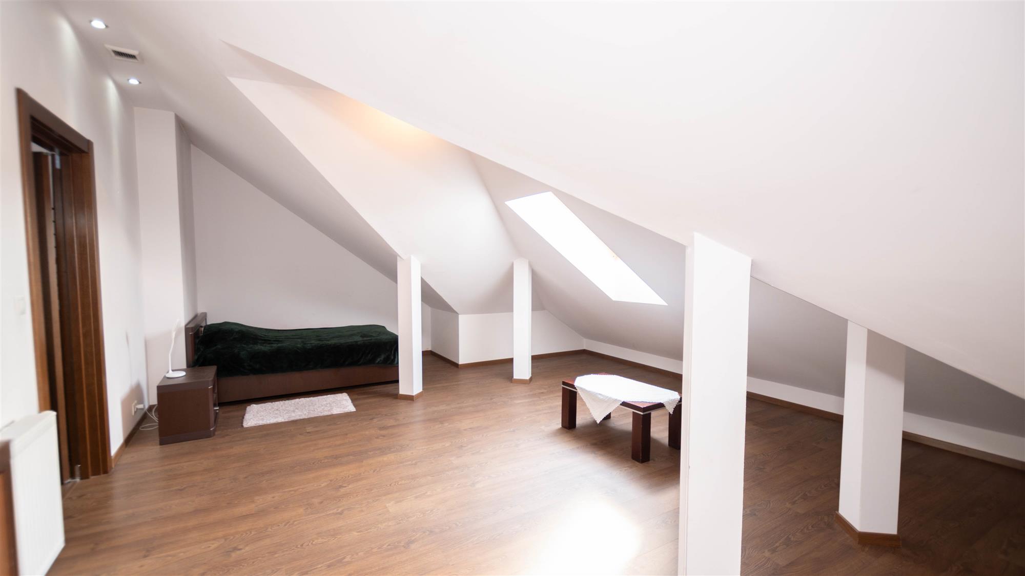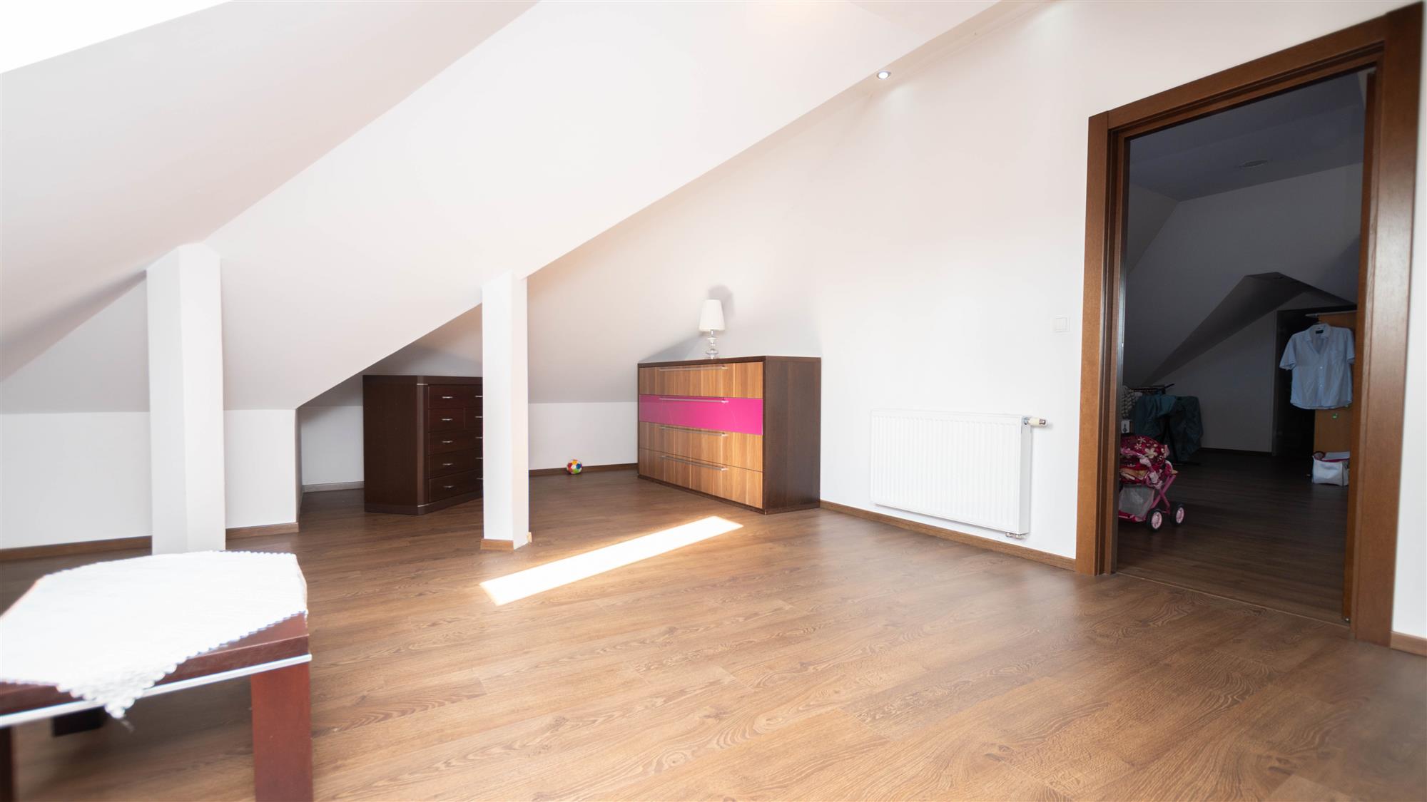 Na poddaszu zaprojektowano otwartą przestrzeń do dowolnej aranżacji, pokój oraz garderobę, co daje dużą swobodę w dopasowaniu przestrzeni do własnych potrzeb. Obecnie właściciel zagospodarował tą część na siłownie .