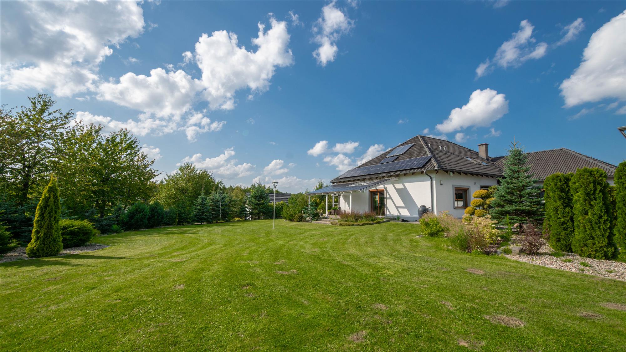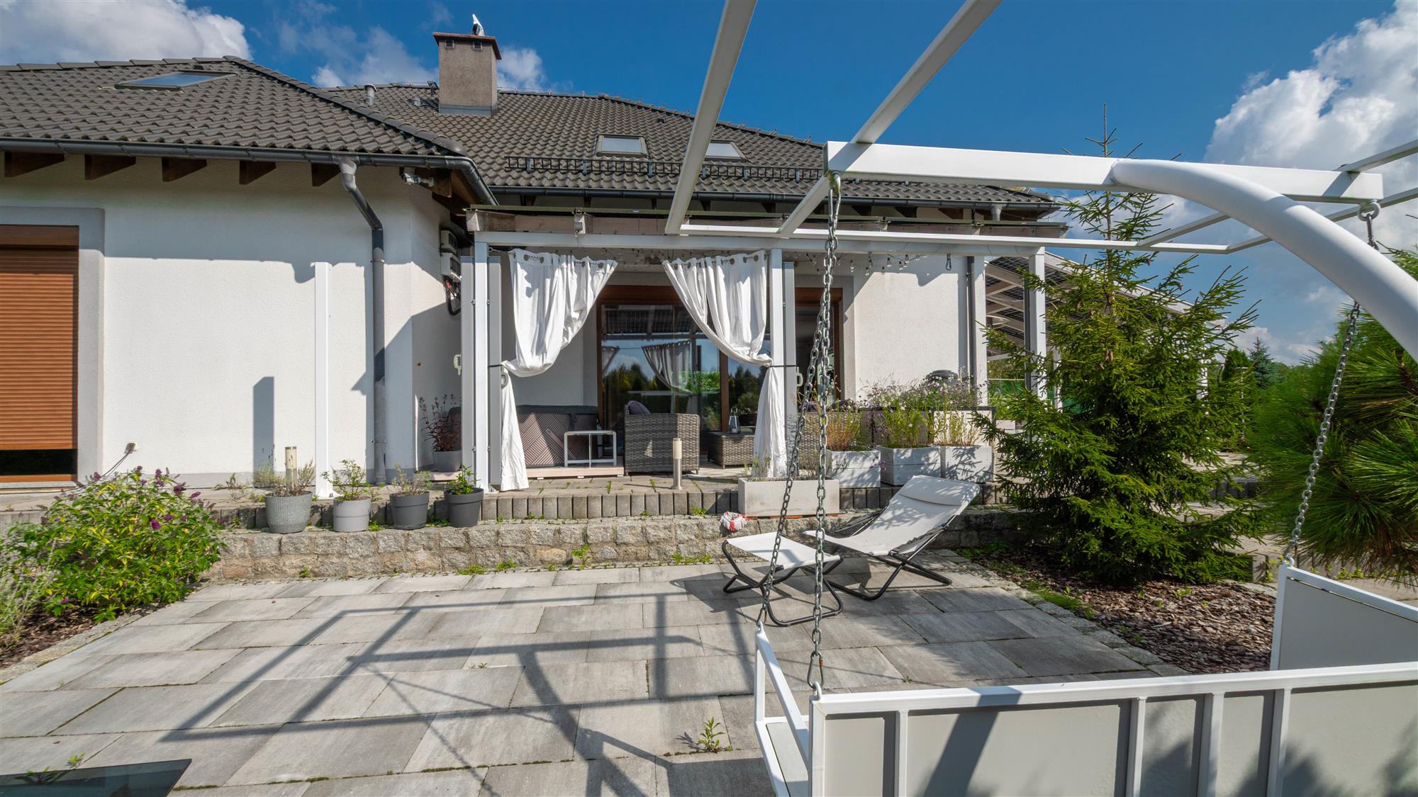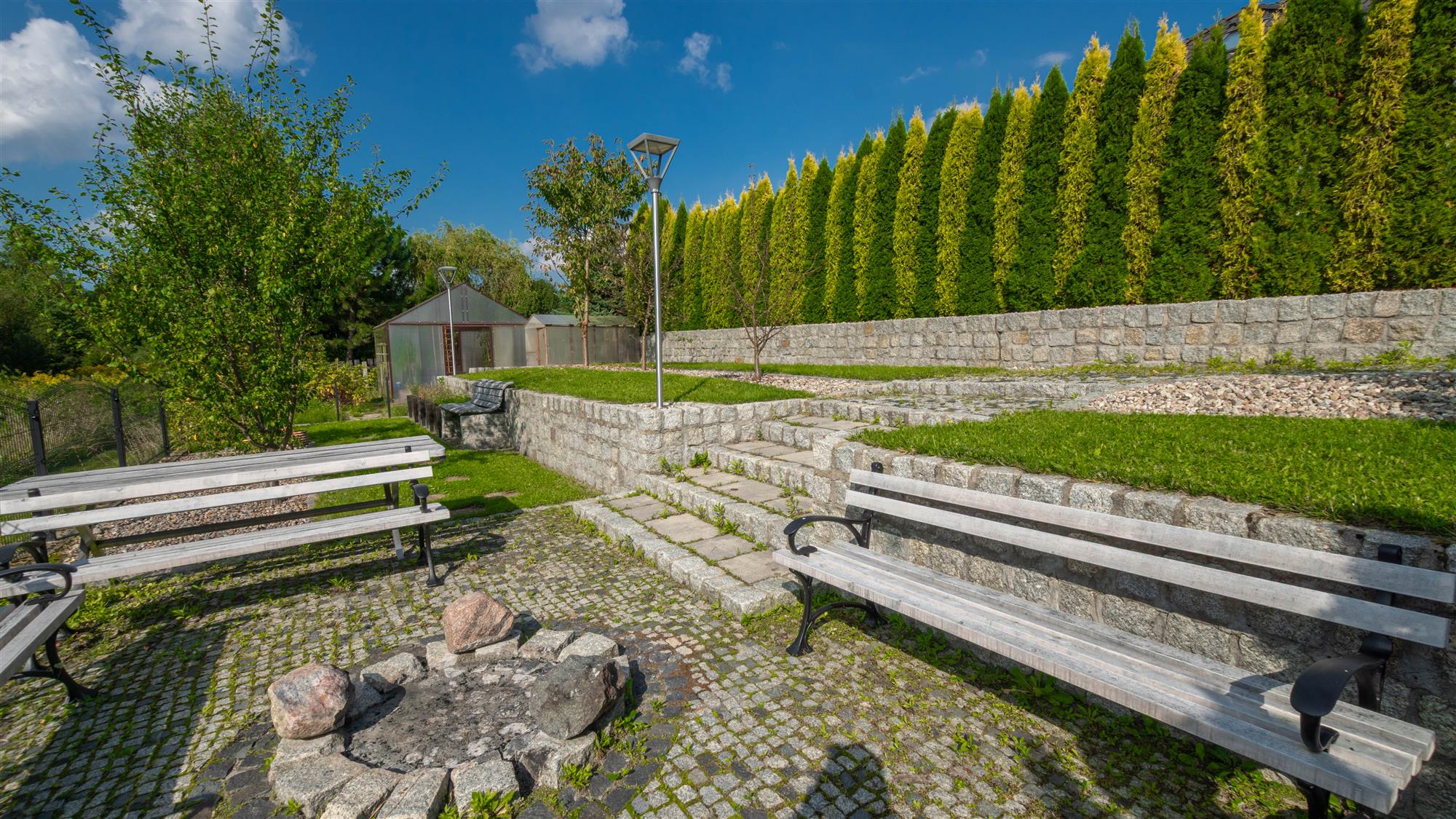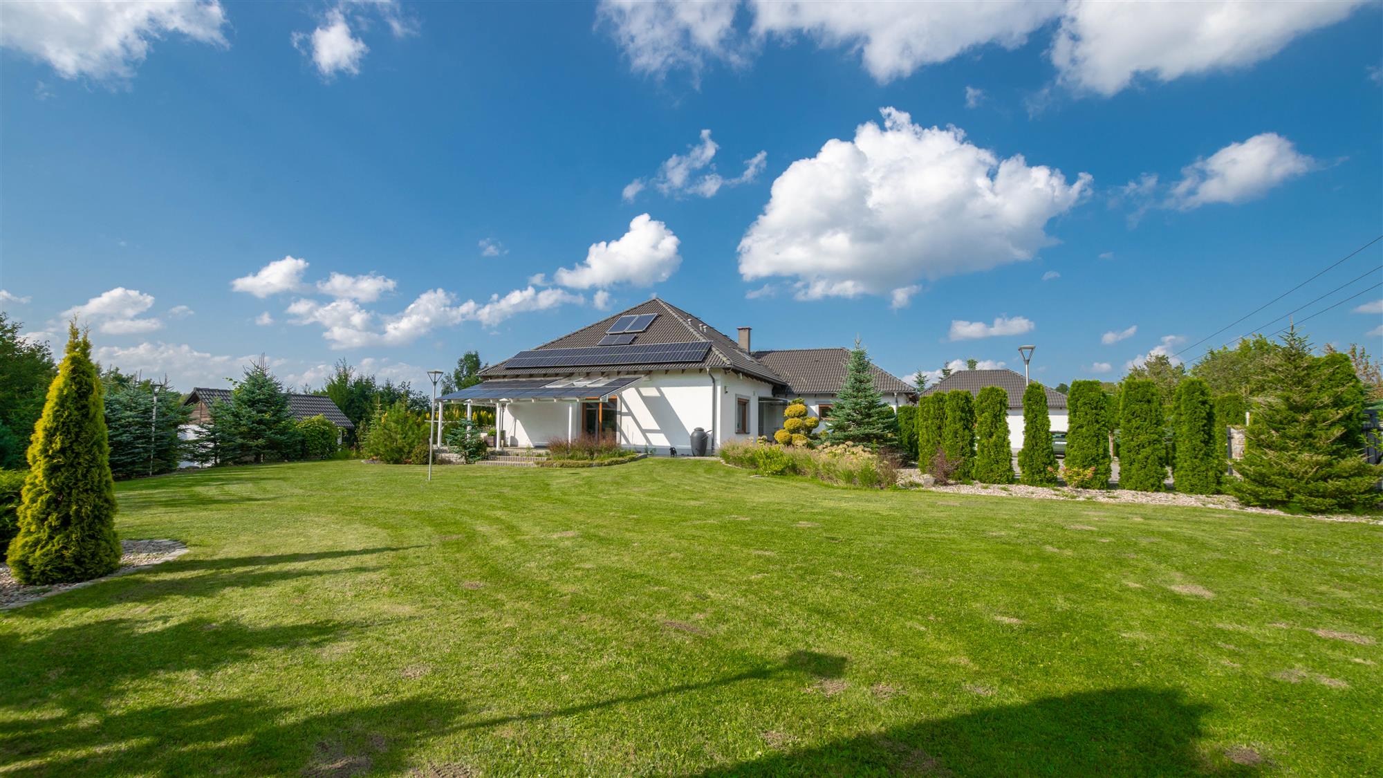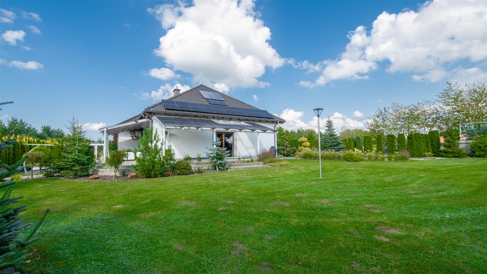 Działka jest ogrodzona, uzbrojona w media takie jak: sieć wodociągowa, elektroenergetyczna, deszczowa, gazowa oraz telefoniczna. Ogród w pełni zagospodarowana z licznymi nasadzeniami z przestrzennym miejscem na relaks, zabawę z dziećmi czy organizację spotkań na świeżym powietrzu. Całość położona jest w otoczeniu domów jednorodzinnych, na spokojnym osiedlu, z dogodnym dojazdem oraz infrastrukturą w zasięgu ręki. . W ogrodzie znajduje sie , strefa grillowa z ławeczkami oraz paleniskiem. Dodatkowo dwie szklarnie oraz budynek gospodarczy . Przygotowana konstrukcja stalowa pod saunę a taraz jest wyposażony w jacuzzi . Ogrzewanie podłogowe z pieca olejowego lub z kominka z płaszczem wodnym. Dom wyposażony w panele fotowoltaiczne o mocy ok 10 Kw
